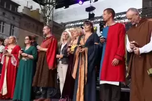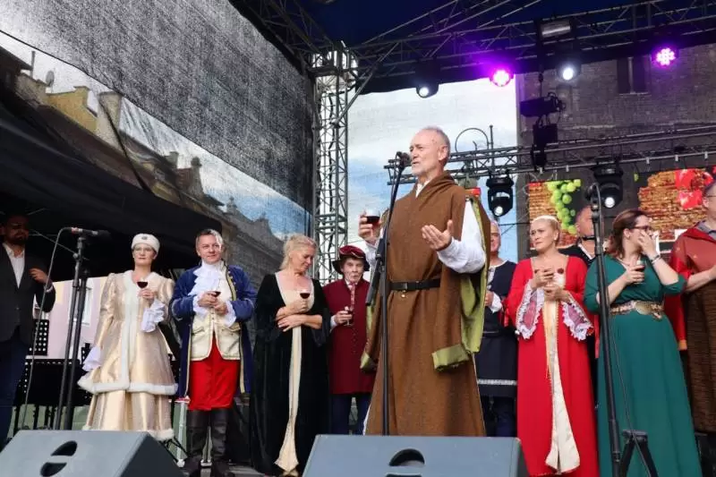 W ten weekend działo się wiele na Rynku Dolnym w Środzie Śląskiej. Sobotnie obchody Święta Wina tradycyjnie zainaugurował barwny korowód z udziałem władz gminnych, powiatowych oraz zaproszonych gości i uczniów lokalnych szkół przebranych w stroje historyczne, któremu przewodził burmistrz Adam Ruciński i Natalia Aleksy. Włodarz rozpoczął 17. edycję Święta Wina wznosząc toast lampką lokalnego trunku.
