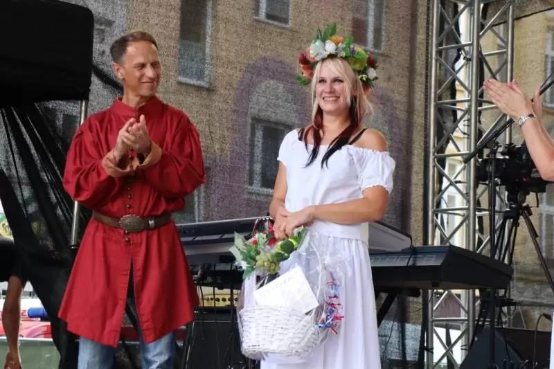 Pięć mężatek walczyło na scenie w konkursie Muzeum Regionalnego w Środzie Śląskiej o tytuł Miss Winnego Grona. Najwięcej soku z winogron wydeptała Agnieszka Sienkiewicz z Wrocławia, jednak zdaniem jury z największą gracją zrobiła to Monika Gorczyńska, która otrzymała tytuł Miss Winnego Grona.