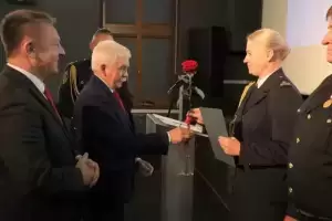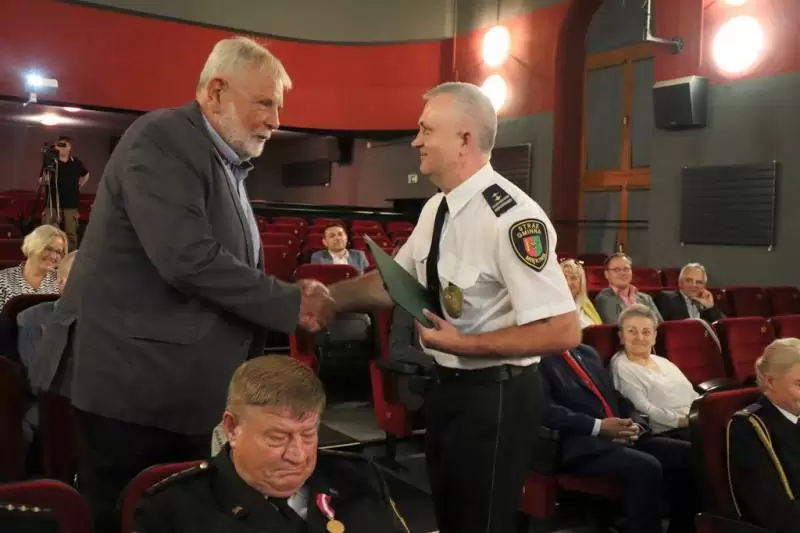 Damian Mrozek, doradca wojewody dolnośląskiego ds. kontaktów z organizacjami pozarządowymi i kombatanckimi razem z burmistrzem Adamem Rucińskim wręczyli odznaczenia trzem średzkim funkcjonariuszom z najdłuższym stażem pracy w SM – „Złoty Medal za Długoletnią Służbę” nadany przez Prezydenta RP Andrzeja Dudę. Tym tytułem uhonorowani zostali emerytowany strażnik st. insp. Zbigniew Krężel, st. insp. Władysław Wasilewski oraz st. insp. Marek Koziarski.