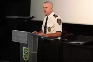 Wszystkim funkcjonariuszom Straży Miejskiej w Środzie Śląskiej podziękował burmistrz Adam Ruciński wraz z przewodniczącym Rady Miejskiej Jerzym Krycińskim. – Zawsze uważałem, że miasta powiatowe, takie jak Środa Śląska, powinny posiadać w swoich zasobach Straż Miejską. To ważny i potrzebny organ, stojący na straży bezpieczeństwa mieszkańców i porządku publicznego gminy – mówił podczas uroczystości burmistrz Ruciński. – Nigdy nie wątpiłem w sens istnienia tej formacji, którą nieustannie staramy się wspierać i udoskonalać – wskazywał włodarz średzkiej Gminy, który podkreślał konieczność nieustannego samodoskonalenia działań Straży Miejskiej i potrzebę jeszcze większego wsparcia ze strony Komendy Powiatowej Policji w działaniach prewencyjnych. Burmistrz podziękował także funkcjonariuszom za ich codzienną służbę i złożył życzenia.