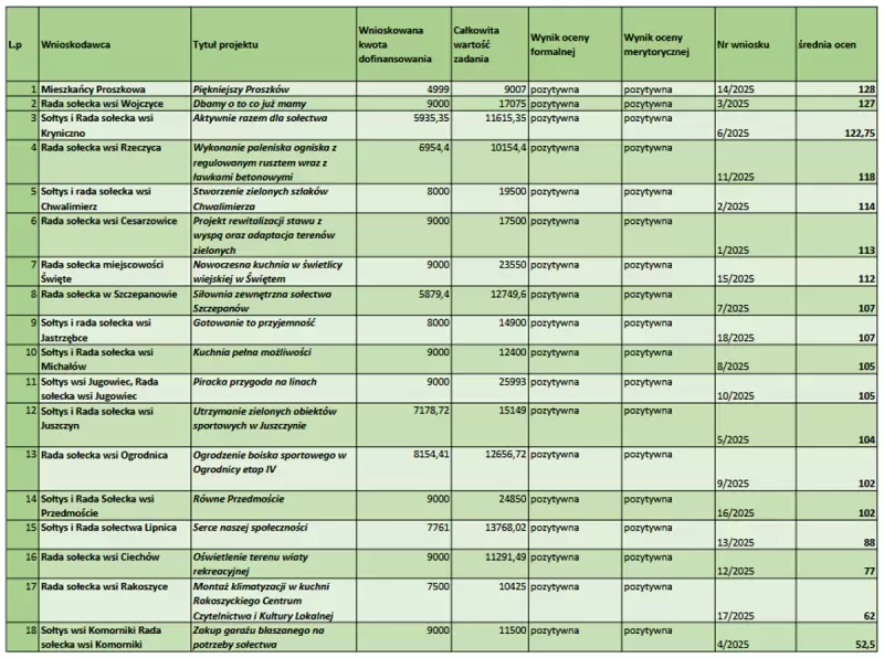 Zakończyła się ocena merytoryczna wniosków złożonych w ramach konkursu “Aktywni na Ziemi Średzkiej”. Do naboru zgłoszono 18 projektów, wszystkie przeszły pozytywną ocenę formalną.