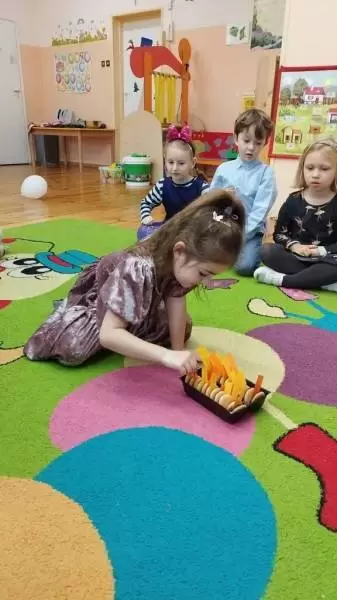 Bawiliśmy się naprawdę wyśmienicie, a każda nowa wróżba wzbudzała w nas ogromną ciekawość. Nie zabrakło również tradycyjnego ustawiania „bucików”, „losowania rekwizytów” i innych wróżb związanych z tym świętem. Dzień ten dostarczył przedszkolakom wielu przeżyć i emocji.