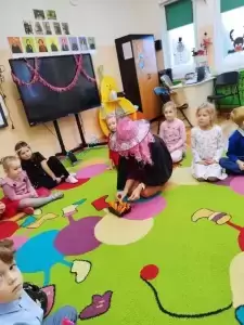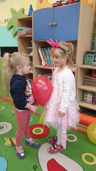 Sale w magiczny sposób „zamieniły się” w tajemnicze miejsca, a nastrojowa muzyka wprowadziła nas w świat magii. Dzięki zabawie w przekłuwanie baloników dowiedzieliśmy się, kim zostaniemy jak będziemy dorośli - okazało się, że będą wśród nas dyrektorzy, nauczyciele, rolnicy czy aktorzy.