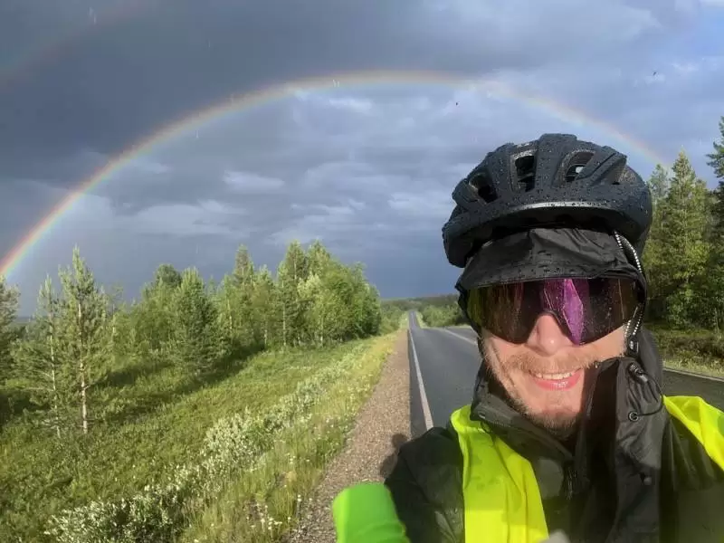 Samotna wyprawa rowerowa była dla mnie sprawdzianem wytrwałości. Przez trzy dni bez przerwy towarzyszył mi deszcz, niejednokrotnie doskwierał wiatr i chłód, czasami nachylenie terenu sięgało aż 12%, a w lewej ręce traciłem czucie. Dla równowagi trzeba dodać, że dwukrotnie na niebie pojawiła się piękna tęcza, wiele razy spotkałem renifery, a czasami było z górki :) Ale przede wszystkim spotkałem na swojej drodze wielu życzliwych ludzi. Miałem wrażenie, że mój brak słuchu, wcale nie był barierą. Ludzie, widząc flagę na moim rowerze, podchodzili i zaczynali rozmowę. Pytali, jak się czuję, skąd pochodzę i dokąd jadę. Czasami częstowali herbatą, jedzeniem. Robiliśmy wspólne zdjęcia i ruszałem na przód. Byli to Polacy, Finowie, Niemcy, Włosi i wielu innych. Byli też Głusi Amerykanie i Łotysze. Tu przydała mi się bardzo znajomość Międzynarodowego Języka Migowego International Sign.