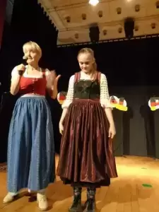 Koncert rozpoczął się od powitania przez panią Lidię Walerych oraz pomysłodawczynię imprezy Renatę Kopacką. Pierwsze na scenie pojawiły się przedszkolaki z grupy „Kangurków” , które rozbawiły publiczność piosenkami w języku angielskim, przygotowanymi pod kierunkiem pani Moniki Ciszewskiej. Ta sama lektorka przygotowała grupę uczniów ze SP, które zaprezentowały angielski repertuar. Następnie wystąpili uczniowie SOSW w repertuarze niemieckim, przygotowani przez panią Renatę oraz uczniowie klas młodszych pod kierunkiem pani Ewy. Również członkowie Szkolnego Koła Języka Niemieckiego zaprezentowali swoje talenty. Po czym pani Renata zaoferowała wraz z uczniami pokaz mody bawarskiej.