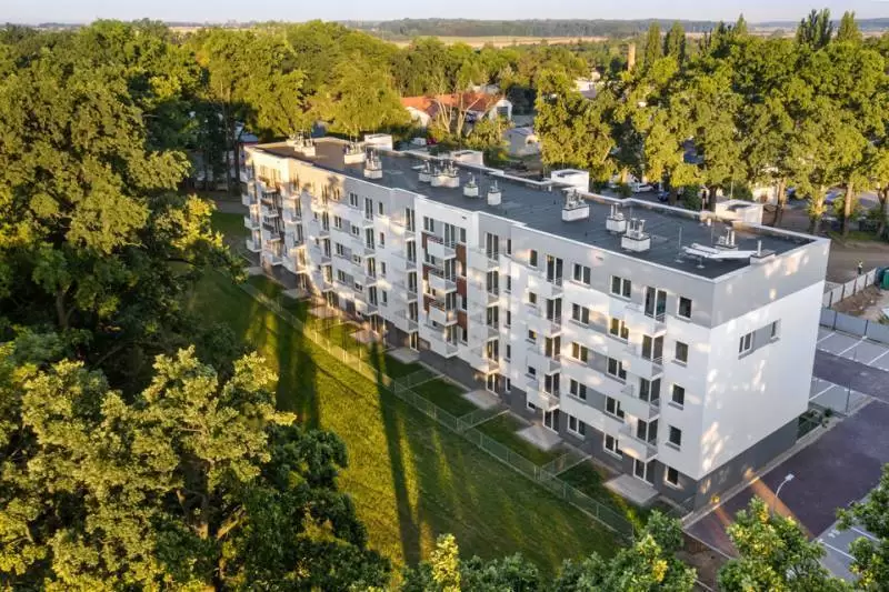 Nowo powstałe osiedle znajduje się niedaleko centrum miasta (zaledwie 15 min. spacerem). Są tu nowoczesne mieszkania z balkonami lub ogródkami oraz pomieszczenia usługowe na parterze. Co warto podkreślić, pięciokondygnacyjne budynki wyposażone są w windę, a naprzeciwko znajduje się park, przez który przepływa rzeka Średzka Woda.