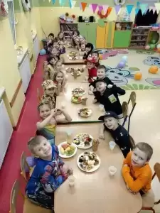 Wystrój sal wprowadzał w radosny nastrój oraz zachęcał wszystkich do wesołej zabawy. Podczas pląsów robiło się kolorowo, barwnie i wesoło. Nie zabrakło także słodkiego poczęstunku.