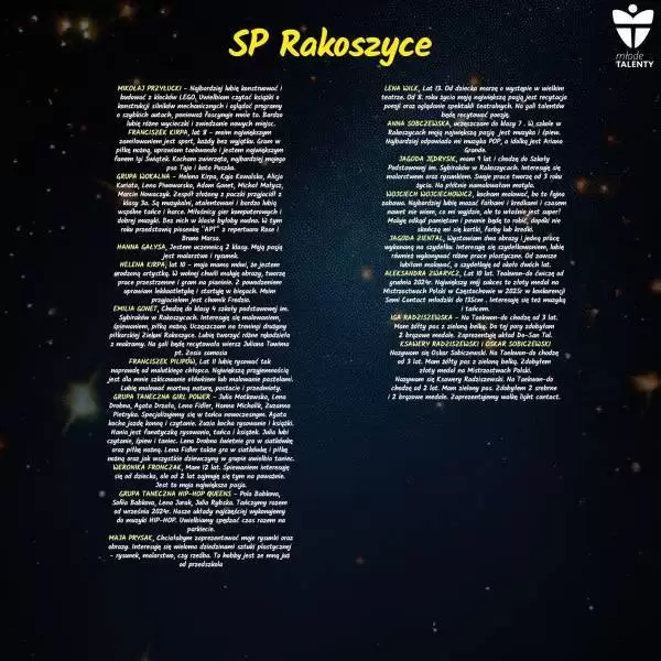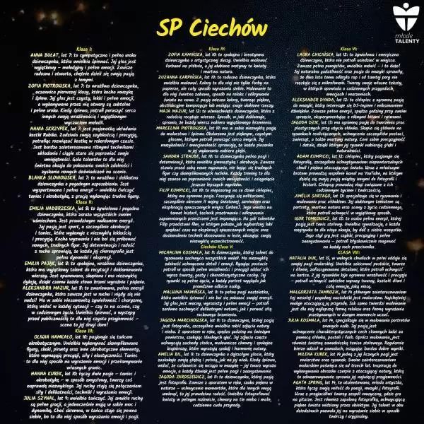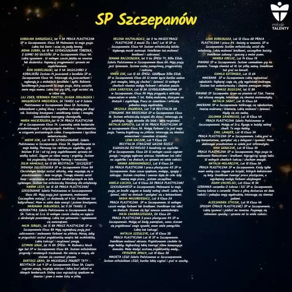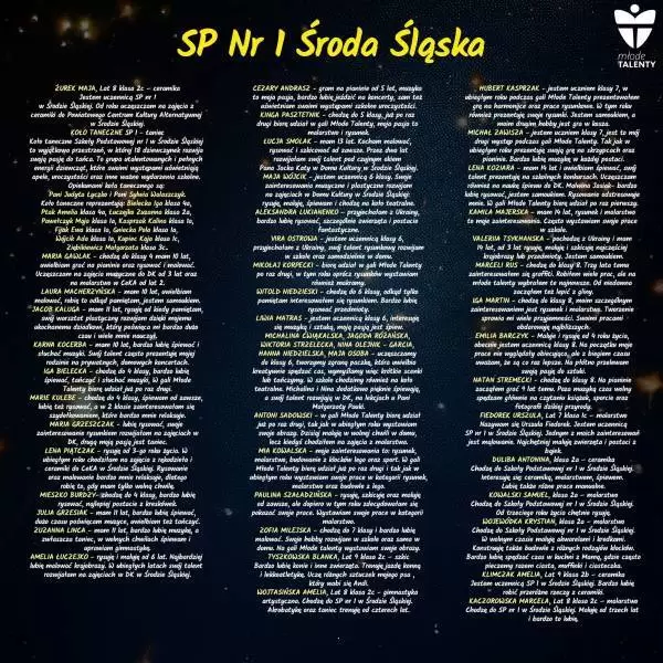 Podczas wydarzenia swoje talenty zaprezentują uczniowie 7 średzkich szkół, a jeśli jesteście ciekawi szczegółów, zapraszamy do galerii poniżej, gdzie znajdują się informacje o uczestnikach.
