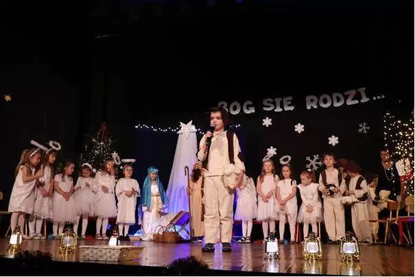 Jasełka pt. „Bóg się rodzi” w wykonaniu średzkich przedszkolaków na scenie Domu Kultury przygotowały nauczycielki Ewa Bartoch i Beata Wandzio. Dzieci z wielką wrażliwością i zaangażowaniem wcieliły się w najważniejszy biblijne role: Maryi, Józefa, Trzech Królów, Aniołków, i Pasterzy.