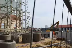 Tempo prac wydaje się bardzo dobre. Na budowie pracuje kilkudziesięciu robotników i dużo ciężkiego sprzętu. W tej chwili trwają prace przy fundamentach budynków.