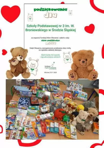 W listopadzie po raz drugi udało się zorganizować zbiórkę zabawek, gier planszowych i przyborów szkolnych dla dzieci z wrocławskich szpitali, które za pośrednictwem Fundacji Mam Marzenie trafiły do małych pacjentów w “Dniu Pluszowego Misia”.