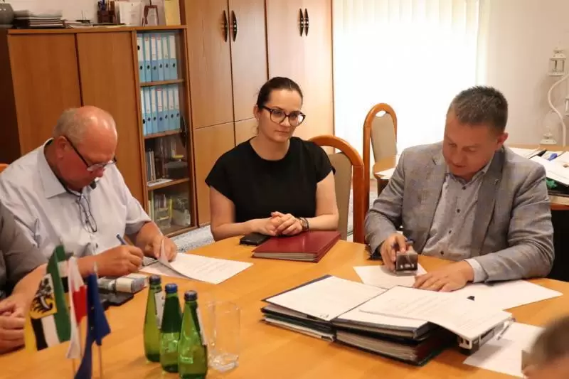 8 czerwca burmistrz Środy Śląskiej podpisał z właścicielami firmy INSTALATOR umowę na budowę drogi na ul. Dębowej w Ciechowie. To kolejny etap budowy dróg na osiedlu Buczki.