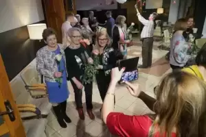 Po muzycznej uczcie, Panie otrzymały symboliczne róże z rąk burmistrza Adama Rucińskiego i przewodniczącego Rady Miejskiej Jerzego Krycińskiego, którzy na scenie osobiście złożyli Paniom życzenia z okazji ich święta. Wieczór zakończył się miłymi pogawędkami przy słodkim poczęstunku we foyer DK.
