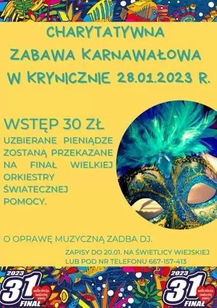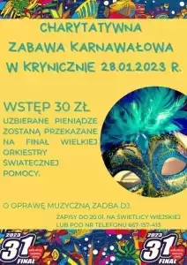 Wszystkie datki zebrane do puszek w trakcie w/w wydarzeń zostaną przeznaczone na 31. Finał Wielkiej Orkiestry Świątecznej Pomocy. Dziękujemy za chęć wsparcia akcji WOŚP i współpracę ze sztabem #1835 Dom Kultury w Środzie Śląskiej. Razem możemy więcej!