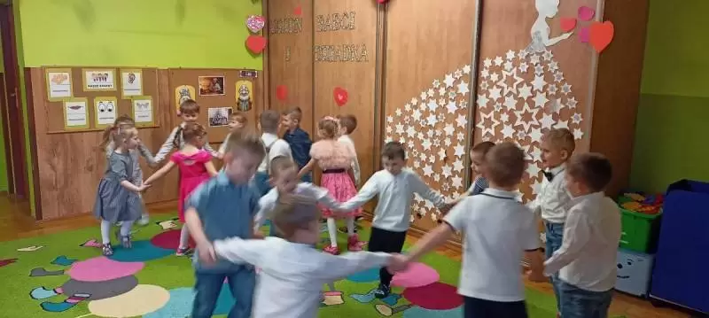 Dzień Babci i Dziadka jest już na stałe wpisany w kalendarz uroczystości przedszkolnych. Dni poprzedzające to ważne święto obfitowały w liczne próby oraz prace nad prezentami dla dziadków. Na zaproszenie dzieci, do każdej grupy przybyli licznie babcie i dziadkowie, aby obejrzeć swoje wnuczęta podczas występów. Przedszkolaki przygotowały piękne wiersze, piosenki i tańce. Mali artyści z przejęciem odtwarzali swoje role, czego dowodem były widoczne łzy wzruszenia u dziadków. Po części artystycznej ukochane wnuczęta w dowód pamięci i miłości wręczyły swoim babciom i dziadkom własnoręcznie wykonane prezenty. Dużą radością dla dzieci, jak i dziadków, była możliwość wspólnego spędzenia czasu. Babcie i dziadkowie z dumą i uśmiechem opuszczali nasze przedszkolne mury.