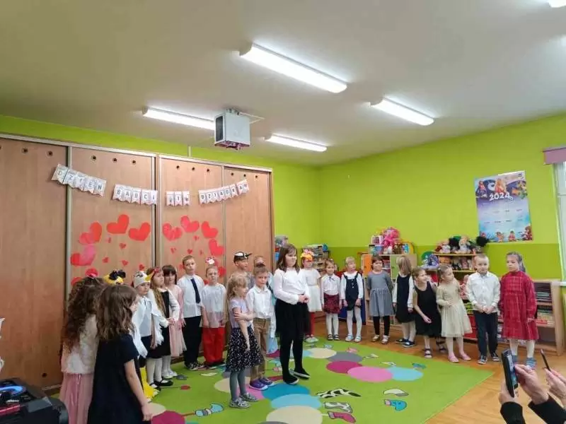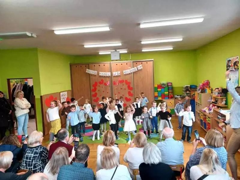 Każda grupa zapraszała swoich najbliższych i pod czujnym okiem wychowawczyń prezentowała tańce, wiersze oraz piosenki. Odświętnie ubrane dzieci wspaniale wystąpiły przed gośćmi.