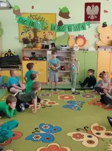 Tego dnia panie nauczycielki na wiele różnych sposobów uzmysławiały swoim przedszkolakom jak należy dbać o środowisko, ukazywały postawy ekologiczne, tłumaczyły jaką rolę w przyrodzie pełnią drzewa, omawiały ich znaczenie dla człowieka, kształtowały więź z przyrodą i pozytywnym stosunkiem do niej. Wszystko po to by propagować ideę ochrony przyrody nie tylko od "święta" ale także każdego dnia.