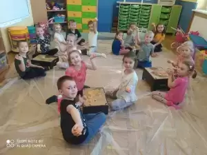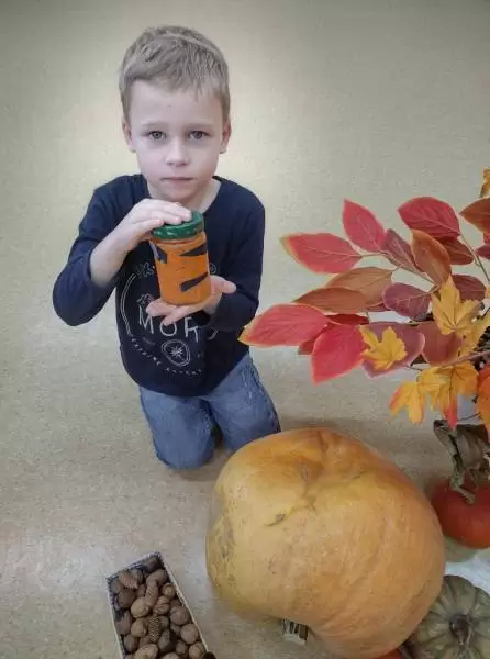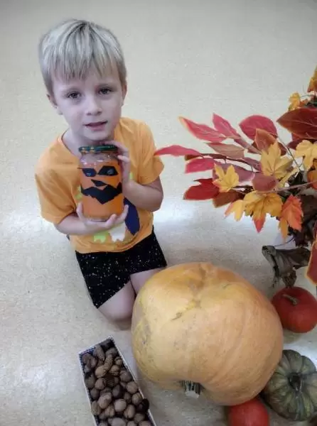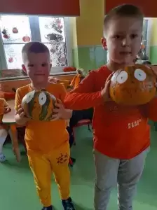 Dzieci poznały wielką różnorodność dyń i wzbogaciły wiedzę na ich temat. Dowiedziały się, że dynia jest bardzo zdrowym warzywem i, że można z niej przygotować wiele dań tj.: pieczywo, zupę, ciasto, przetwory.
