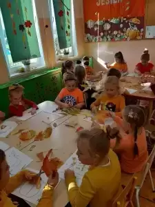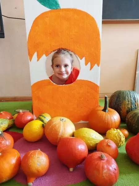 Wszyscy odkryli co dynia kryje w środku, oraz co możemy z niej zrobić. Dzieci wykonały pracę plastyczną - ozdabiały dynie na różne sposoby: malowały farbami, kredkami, wyklejały bibułą czy listkami. Na zakończenie można było zrobić sobie zdjęcie z Dyniową Fotobudką.
