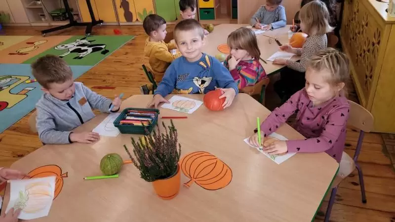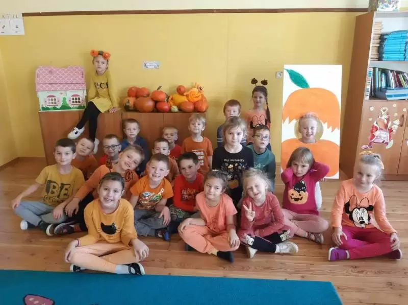 Jednogłośnie gwiazdą tegorocznej jesieni została DYNIA! Z tej okazji Przedszkole Publiczne w Ciechowie zamieniło się w dyniową krainę, w której królował kolor żółty i pomarańczowy.