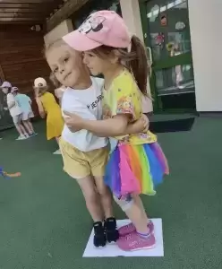 Spotkanie rozpoczęło się od zabaw muzyczno – ruchowych, następnie sportowych oraz plastycznych. Po pląsach i tańcach, przyszedł czas na słodki poczęstunek oraz swobodne zabawy na terenie ogrodu. Na zakończenie przedszkolaki otrzymały upominki.