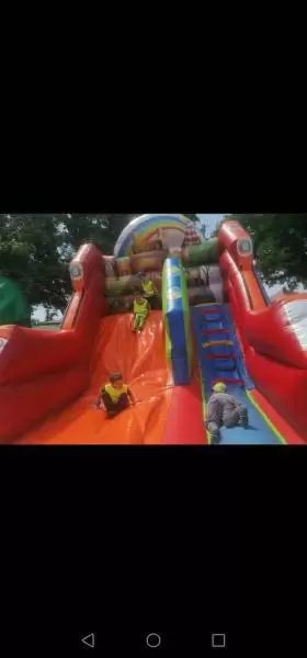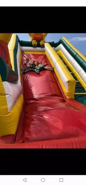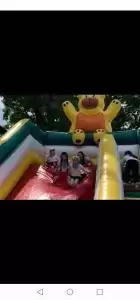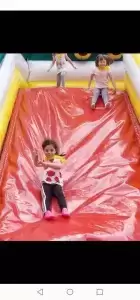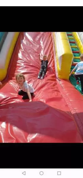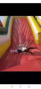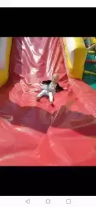 W środę natomiast dobrej zabawy był ciąg dalszy. Dmuchańce pojawiły się tym razem na naszym przedszkolnym placu, gdzie przy pięknej i słonecznej pogodzie, dzieci z ogromną przyjemnością miały możliwość zjeżdżać z nich dowoli, ciesząc się przy tym niezmiernie.
