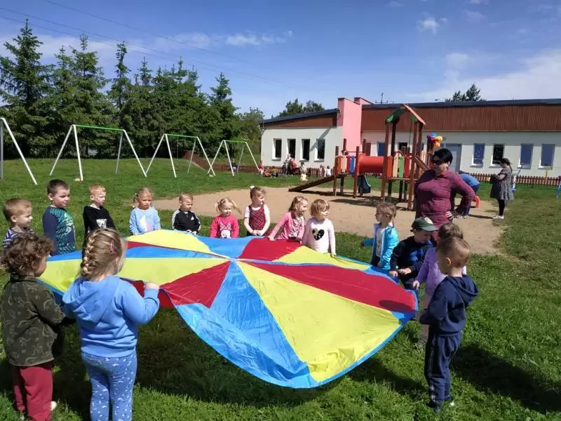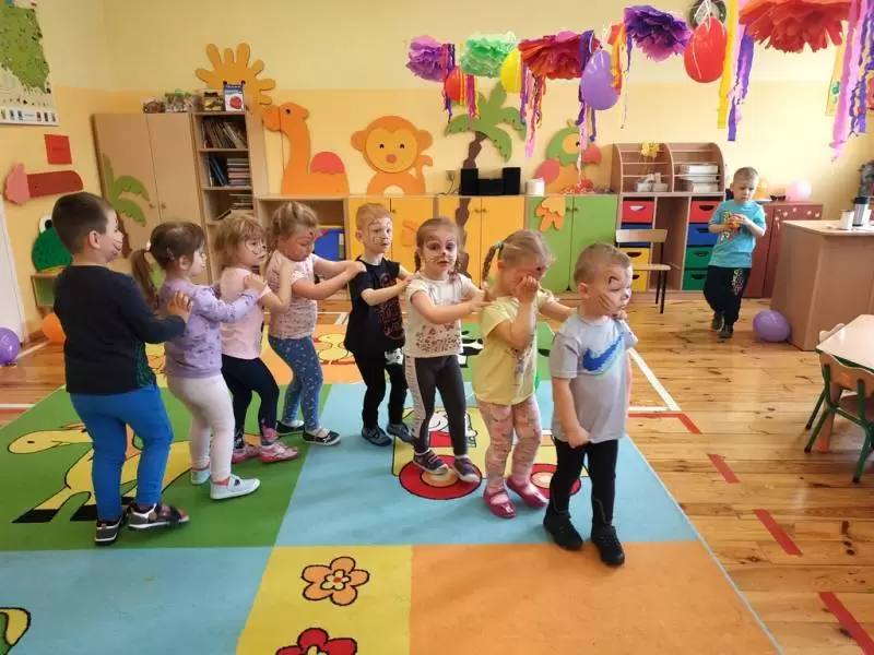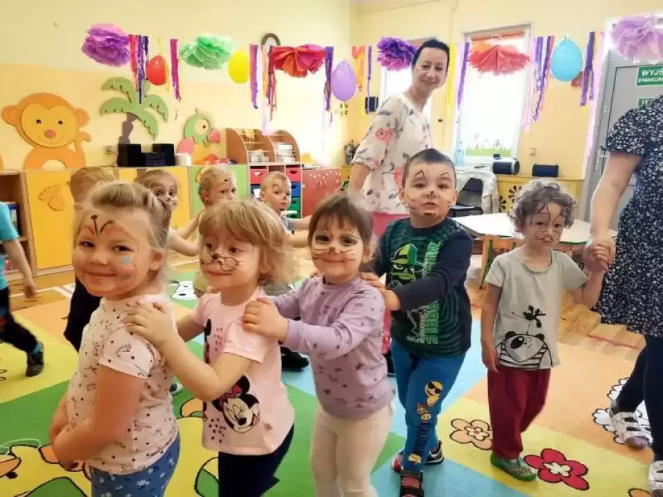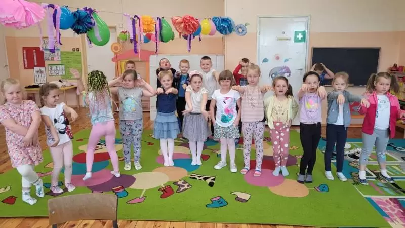 Była zabawa taneczna z balonikami, konkursy taneczne oraz zawody sportowe. Przedszkolaki wzięły udział w zajęciach plastycznych, wykonując barwne motyle. Po wesołych tańcach i pląsach dzieci przeszły na kolorowo ustrojony plac zabaw. Tam czekały na nie kolejne niespodzianki m.in. przeciąganie liny, zabawy z chustą animacyjną, rzuty do celu oraz pokaz kolorowych baniek mydlanych. Chętne dzieci miały malowane buźki.