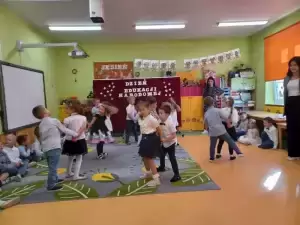 Grupy Tygryski i Grzybki słowami wierszy i piosenek uczciły ten wyjątkowy dzień. Mali artyści odśpiewali tradycyjne 100 lat. Nie zabrakło również tańca, który zrobił ogromne wrażenie na oglądających. Każdy z zaproszonych gości obdarowany został specjalnie przygotowanym na tą okazję upominkiem.