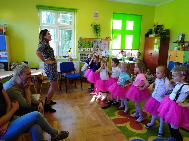 Z okazji Dnia Edukacji Narodowej przedszkolaki z grup: "Kangurki", "Smerfy", "Rybki" i "Mądre Sówki" wraz ze swoimi wychowawczyniami przygotowały piękny program artystyczny. Były piosenki, wiersze, tańce oraz drobne upominki. Dzieci w ten sposób podziękowały za opiekę, wychowanie, naukę, troskliwe ramiona, dobre rady, czyste sale, wszelkie naprawy i smaczne posiłki.