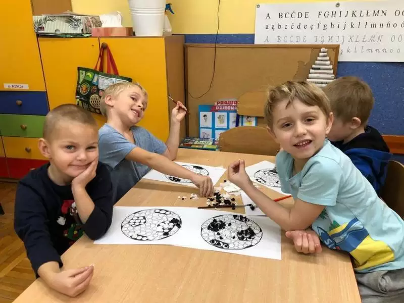 Przedszkolaki zapoznały się z sylwetkami polskiej reprezentacji w piłce nożnej, wykonały pracę plastyczną pt. "Mój puchar", "Piłka nożna". Razem śpiewaliśmy, tańczyliśmy oraz pokonywaliśmy tory przeszkód. Własnoręcznie wykonane puchary trafiły do zwycięskich drużyn.