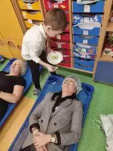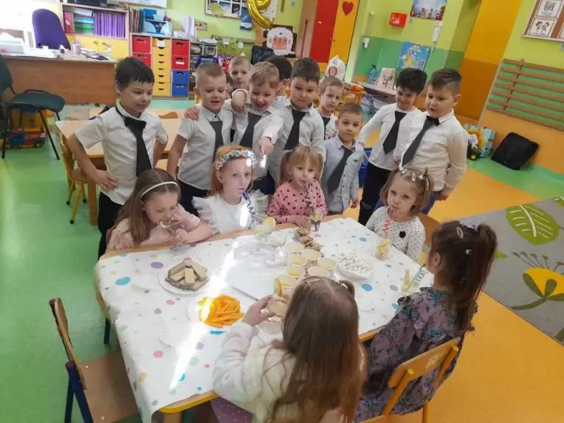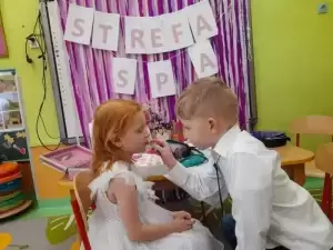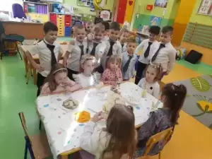 Ze szczególnym zaangażowaniem starali się, aby ten dzień uczynić wyjątkowo miłym. Jako mali dżentelmeni wyręczali dziewczynki w codziennych obowiązkach, między innymi w porządkowaniu sali po zabawie. Dzięki chłopcom, nie tylko ich koleżanki, ale też panie mogły zaznać wyjątkowego relaksu, przenosząc się w strefę SPA. Uśmiechnięte buzie przedszkolaków, a zwłaszcza dziewczynek świadczyły o miło spędzonym czasie.