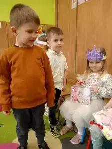 W tym szczególnym dniu chłopcy złożyli życzenia swoim koleżankom, tradycyjnie zaśpiewali uroczyste „100 lat” oraz wręczyli niespodzianki, a także własnoręcznie wykonane laurki i drobne upominki. Nie zapomnieli też przy tym o wszystkich paniach pracujących w przedszkolu.