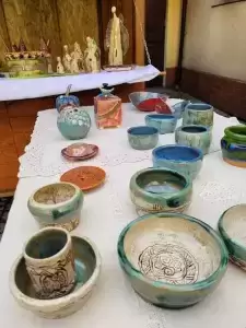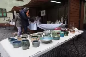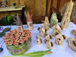 Na dziedzińcu Domu Kultury jednocześnie trwał kiermasz rękodzieła, na którym płeć piękna mogła znaleźć dla siebie piękne drobiazgi, takie jak biżuteria, ceramika, mydła i świecie.