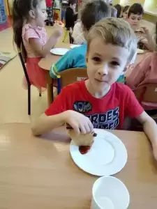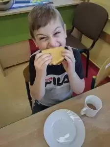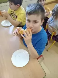 Najbardziej wyczekiwanym punktem tego dnia było zjedzenie przepysznej pizzy przygotowanej przez Panie Kucharki. Dzieci były zachwycone!