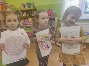 Przedszkolaki stworzyły także kolorowe, smakowicie wyglądające placki, wykorzystując do tego różne techniki plastyczne. Pomimo, iż pizze te były papierowe, bardzo rozbudzały wszystkie apetyty.