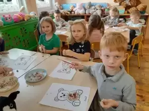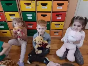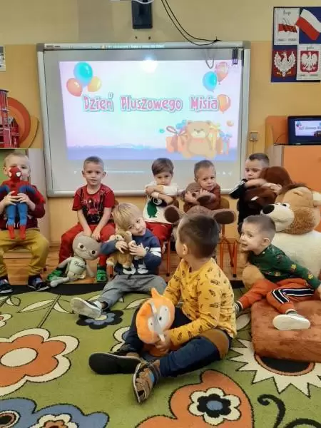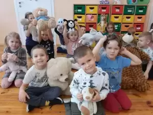 I właśnie w tym dniu Przedszkolaki świętowały wraz ze swoimi pluszakami. Opowiadały, dlaczego lubią swoje pluszaki i jak się z nimi bawią. Dzieci poznały również historię Święta Misia, bawiły się przy piosenkach, a także uczestniczyły w zabawach ruchowych i zgadywankach. Wykonywały również różne prace plastyczne. Wspólnie wymieniliśmy prawdopodobnie wszystkie Misie z bajek. Dzieci obejrzały trochę zapomnianego Misia Uszatka i poznały prawdziwą historię Misia Wojtka – kompana Polskich żołnierzy na froncie. Odbyła się też sesja zdjęciowa ze swoim Misiem.