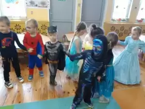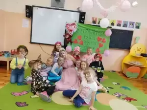W tym wyjątkowym dniu, dzieci przyszły przebrane w przepiękne bajkowe postacie. Nie zabrakło więc: Księżniczek, Myszki Miki, Kubusia Puchatka, Boba Budowniczego, Królewny Śnieżki i wielu innych. Dzieci zaprezentowały swoje stroje podczas wspólnych zabaw na sali.