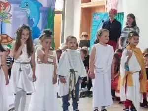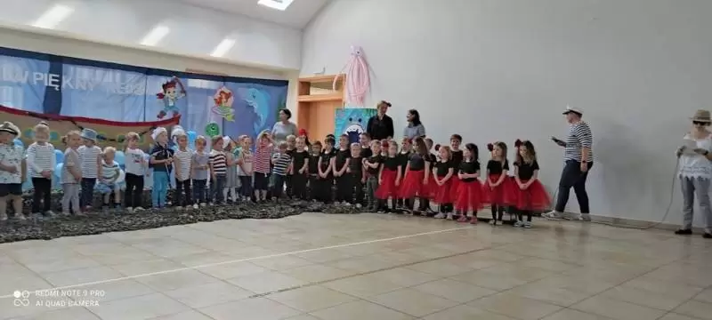 Pierwsza część spotkania to występ artystyczny dzieci z muzycznymi życzeniami dla rodziców, pełen wzruszeń, nagrodzony wielkimi brawami. Podczas rejsu rodzice mieli okazję oglądać swoje pociechy w przepięknych strojach związanych z odwiedzanymi krajami. Najmłodsze dzieci przepięknie przebrane za marynarzy zaprosiły gości w daleką podróż. Pierwszym odwiedzonym kontynentem była Afryka, gdzie swój występ dały dzieci z grupy żłobkowej. Następnie statek zacumował w Hiszpani, gdzie grupa czterolatków zaprezentowała taniec pasodoble. Na koniec rejs dotarł do wybrzeży Grecji, tutaj najstarsze przedszkolaki zaprezentowały taniec zorba.