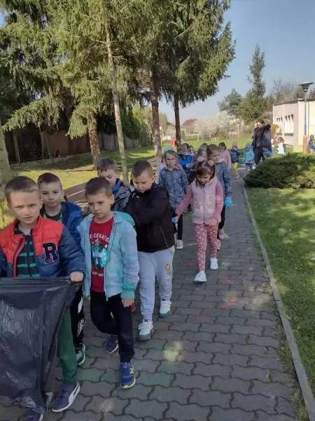Przedszkolaki również w sposób praktyczny pokazały, że dbają o środowisko i pozbierały śmieci w okolicy budynku przedszkola oraz w pobliskim parku.
