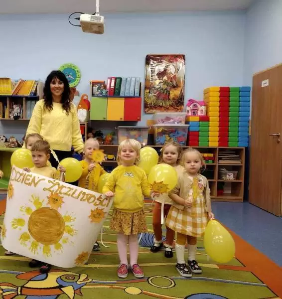W tym dniu dzieci były przygotowane wzorowo, aby uczcić tak szczególne wydarzenie. Miały na sobie ubrania w kolorze żółtym, a także różne gadżety. Nauczycielki w swoich grupach przybliżyły dzieciom historię dnia życzliwości, omawiając przy tym jakie cechy powinna posiadać osoba życzliwa.