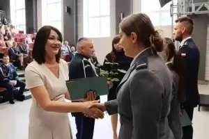Coroczna uroczystość była okazją do wręczenia awansów, nagród i podziękowań. Za wzorową służbę na rzecz praworządności oraz sumienne wypełnianie obowiązków służbowych Burmistrz Elżbieta Czarnota wyróżniła st. sierż. Iwonę Kuras, st. post. Natalię Gniadkowską oraz sierż. sztab. Damiana Międzyrzeckiego.