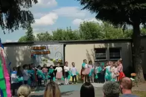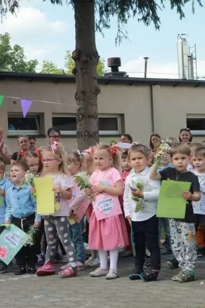 Rodzice zebrani na przedszkolnym placu oglądali występy swoich pociech. Dzieci tańczyły, mówiły wiersze o mamie i tacie, a na koniec, 125 przedszkolaków wspólnie zaśpiewało piosenkę "Dziękuję mamo, dziękuję tato.", "I love my mommy. I love my daddy".