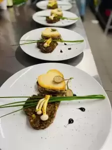 Szczerze mówiąc jeszcze o tym nie myślałem. Jednak nasze miasto ma długą tradycję w produkcji wina. My w swojej restauracji mamy takie regionalne wino, z Winnicy Jaworek. Danie, nad którym mógłbym popracować, byłoby na bazie wina właśnie. Poszedłbym w wytrawny deser z jadalnym złotem, bo przecież jesteśmy Miastem Skarbów. Do tego nutka wina z naszych okolicznych winnic.