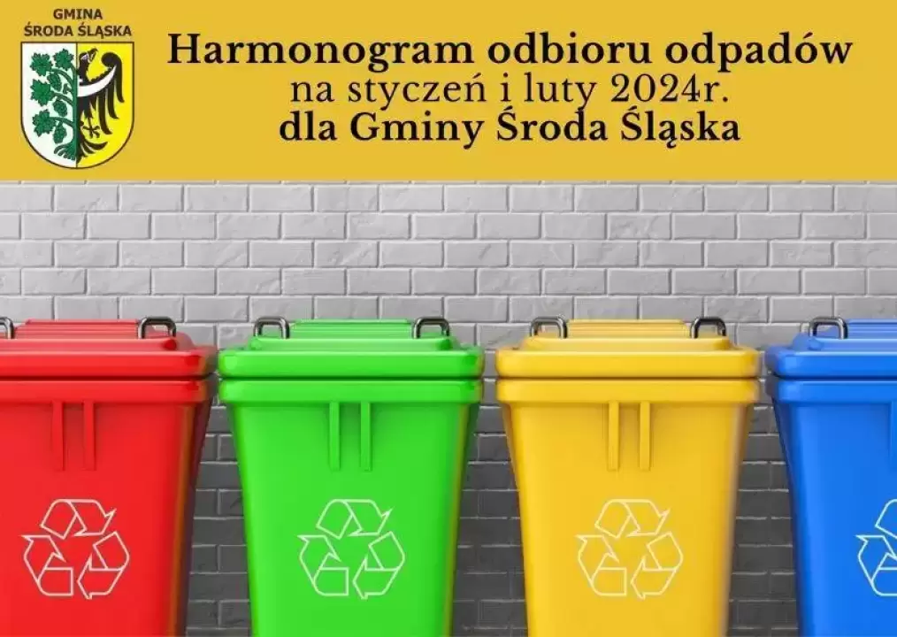 Harmonogram odbioru odpadów na styczeń i luty 2024 r. dla Gminy Środa Śląska