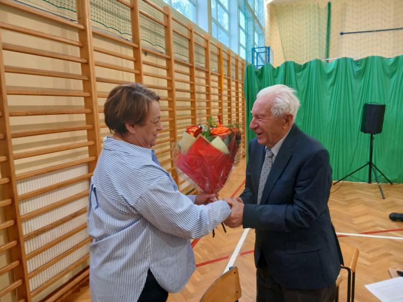 Dalsza część spotkania przebiegła w formie rozmowy moderowanej, podczas której Pan Romuald opowiadał młodzieży szkolnej o wypędzeniu z Wileńszczyzny w 1951 roku i życiu jakiego doznał w Kraju Krasnojarskim. Katorżniczej pracy przy wycince drzew, a także długich staraniach o powrót do ojczyzny, które przyniosły skutek.