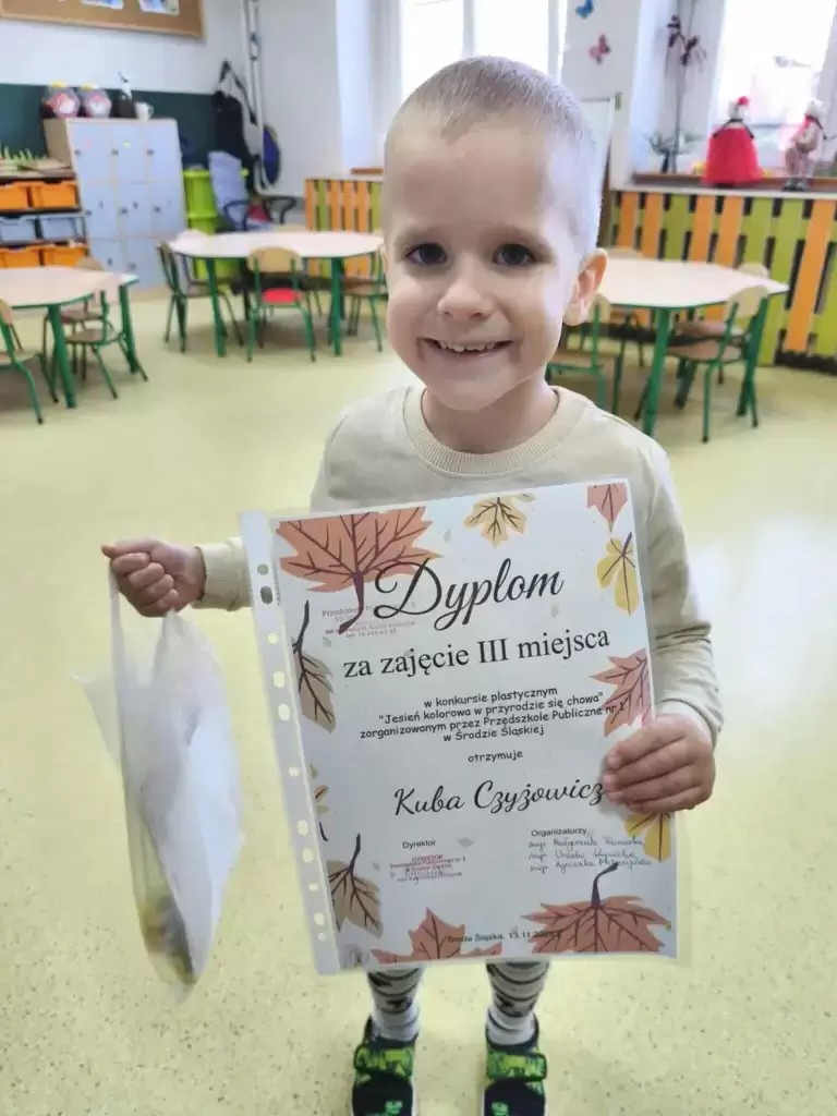 W połowie listopada w Przedszkolu Publicznym nr 1 w Środzie Śląskiej odbyło się rozstrzygnięcie gminnego konkursu plastycznego „Jesień kolorowa w przyrodzie się chowa”. Konkurs skierowany był do dzieci z przedszkoli oraz oddziałów przedszkolnych z terenu gminy, a jego celem było rozwijanie kreatywności najmłodszych, uwrażliwienie na piękno jesiennej przyrody oraz zachęcenie przedszkolaków do obserwacji otaczającego świata.