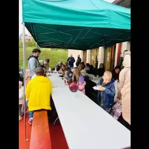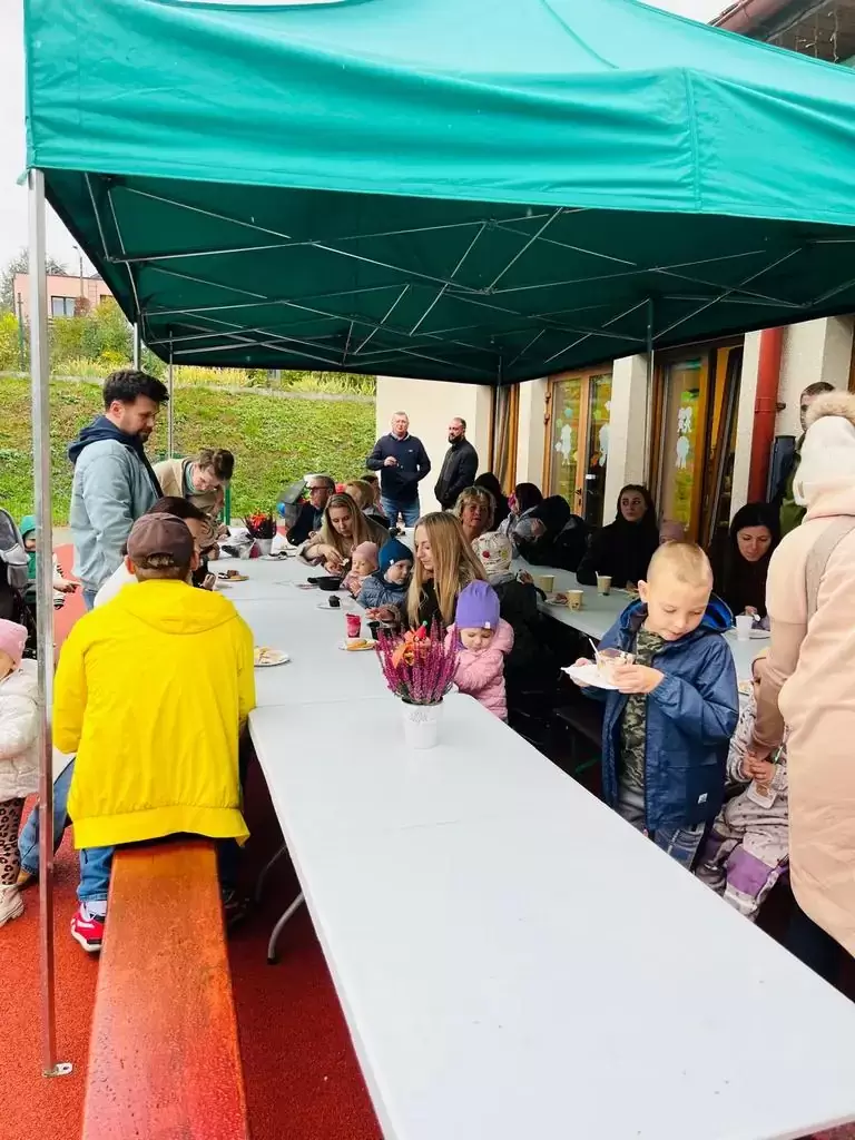 Rodzice pomogli w przygotowaniu pysznych ciast i babeczek. Nasze kucharki ugotowały pyszną zupę dyniową a główne danie przyrządził sam Mariusz Komenda. Całość na wspaniałych fotografiach utrwalił wspierający w takich wydarzeniach naszą placówką Remigiusz Mróz. Mimo zmiennej pogody frekwencja była wysoka i wszyscy – zarówno mali jak i duzi świetnie się bawili.