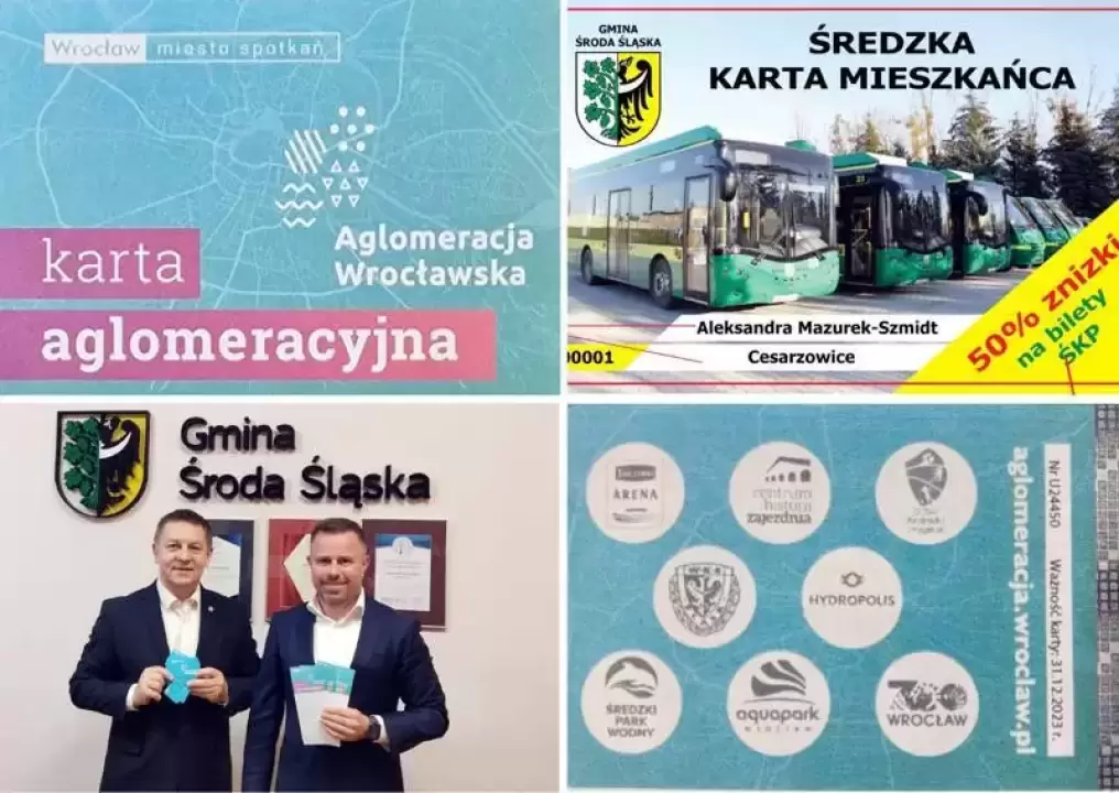 Gmina Środa Śląska w ramach współpracy ze Stowarzyszeniem Aglomeracja Wrocławska bierze udział w programie Karta Aglomeracyjna. Prezes stowarzyszenia Jacek Kowalski przekazał na ręce burmistrza Adama Rucińskiego 1800 Kart Aglomeracyjnych dla Gminy Środa Śląska uprawniających do 50% ulg na zakup biletów u partnerów programu: