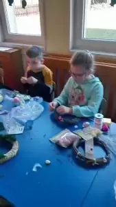 W przygotowaniach do kiermaszu brali udział także Wolontariusze ze Szkoły Podstawowej w Ciechowie, którzy pomagali w ozdabianiu części dekoracji.