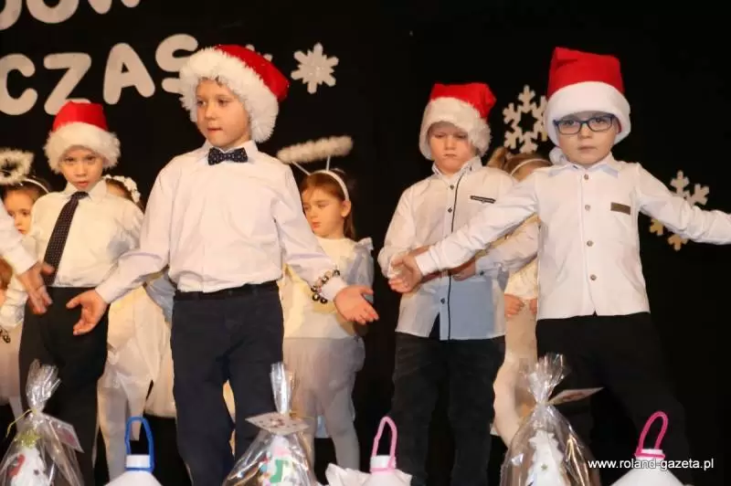 Na scenie zaprezentowały się przedszkolaki z grupy “Misiaki”, przebrane za aniołki i Mikołaje. Każdy z nich zaśpiewał przed zgromadzonymi na widowni rodzicami swoją ulubioną kolędę lub pastorałkę. Na koniec przedstawienia dzieci odwiedził Święty Mikołaj i wraz z kolędnikami wręczył świąteczne prezenty.